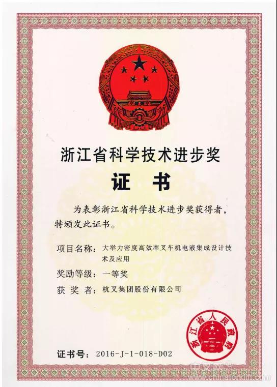 杭叉集團(tuán)榮獲浙江省科技進(jìn)步一等獎