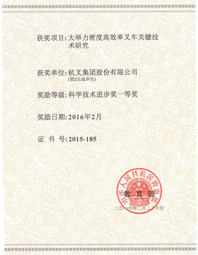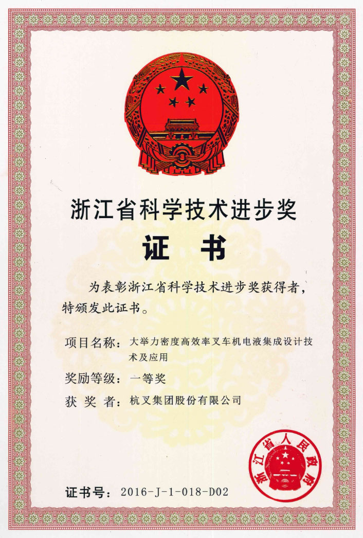 近日,2017年度中國(guó)機(jī)械工業(yè)科學(xué)技術(shù)獎(jiǎng)?lì)C獎(jiǎng)大會(huì)在濟(jì)南隆重舉行。杭叉集團(tuán)股份有限公司和浙江大學(xué)合作的“大舉力密度高效率叉車設(shè)計(jì)制造關(guān)鍵技術(shù)研究”項(xiàng)目喜獲科學(xué)技術(shù)一等獎(jiǎng)。這是該項(xiàng)目繼榮獲2016年教育部科學(xué)技術(shù)進(jìn)步獎(jiǎng)一等獎(jiǎng)和2016年度浙江省科學(xué)技術(shù)進(jìn)步一等獎(jiǎng)后的又一殊榮。