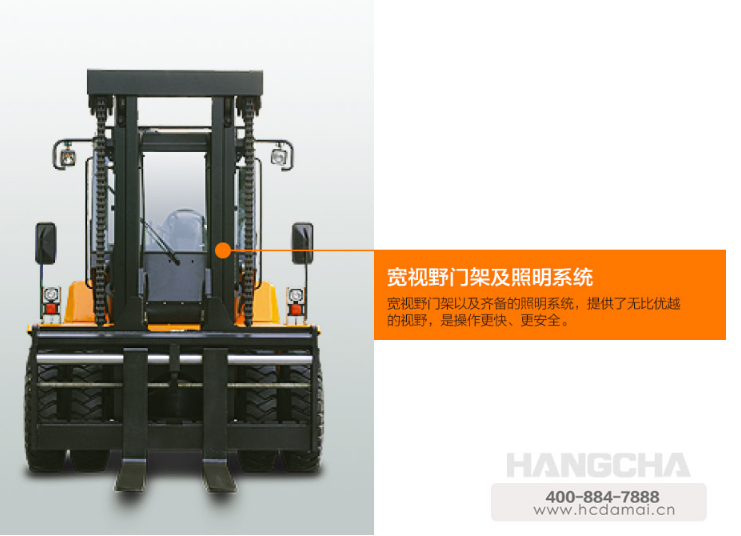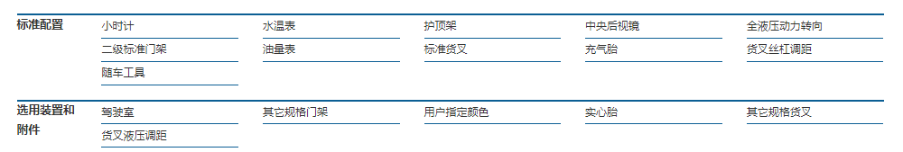 ●與車身銷軸連接,加寬的二級門架,增強門架抗扭性,視野開闊;雙限速閥油路,安全性更好。標(biāo)配貨叉手動絲杠調(diào)距,可選裝液壓單獨可調(diào)叉或側(cè)移調(diào)距叉。