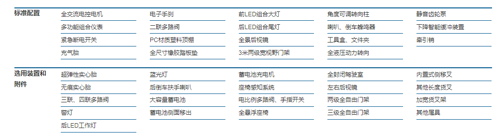 ●全交流配置,交流驅(qū)動(dòng)電機(jī)+交流油泵電機(jī);使得整機(jī)性能更高,電瓶使用時(shí)間更長(zhǎng)。